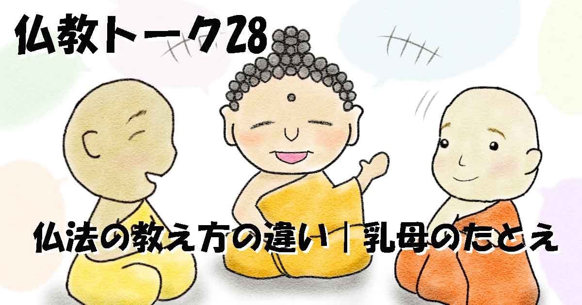 本記事は「雑阿含経巻第26-685」の内容を基に作りました。伝えたい事は同じでも、伝え方は千差万別。弟子への伝え方の違いを、乳母と赤ん坊に喩えて説いています。